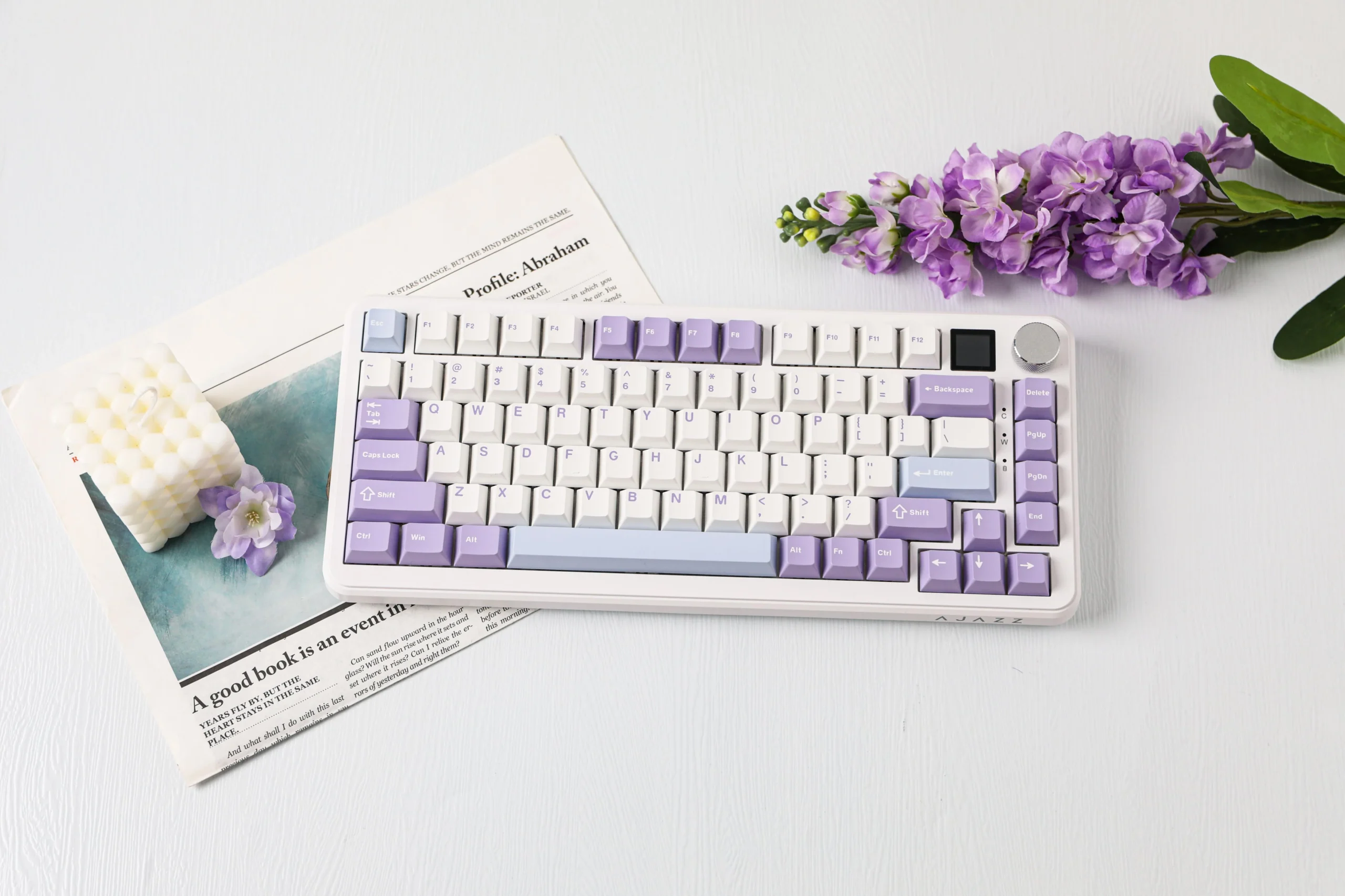 The AK820 Max HE features a 75% layout with a multifunctional knob for volume control, customizable with the AJAZZ Driver. The Tri-mode version includes an additional 0.85-inch TFT screen displaying time, battery level, connectivity, and GIFs. The internal structure features a GASKET gasket design and a stiff aluminum plate for stability and sturdy typing feedback, ensuring precise triggering during gaming. Three layers of sound-enhancing materials (Poron foam, EVA foam, and silicone case pad) improve the typing experience and fully leverage the magnetic switches' performance.