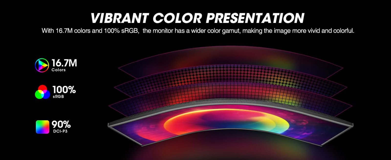 • Color Gamut: 100% sRGB, 90% DCI-P3 (8-bit)