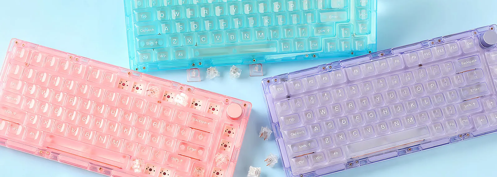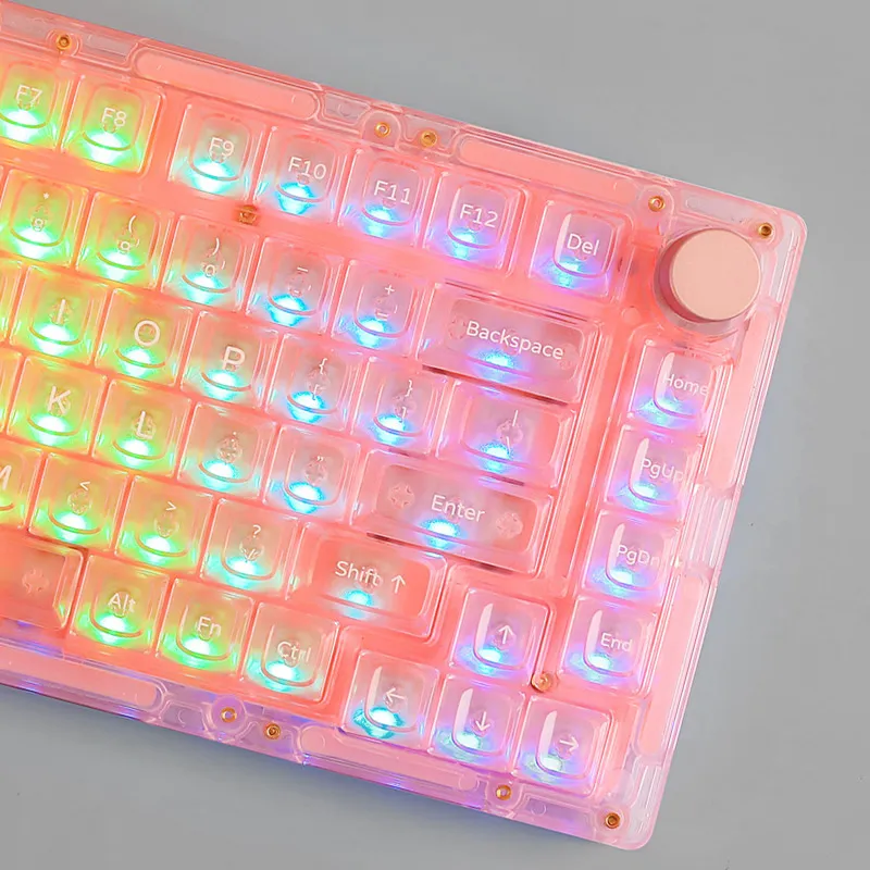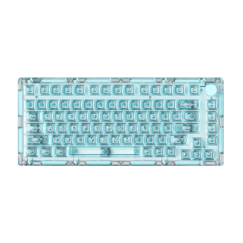 The MonsGeek ICE75 is a highly accessible and fully customizable mechanical keyboard designed to showcase transparent aesthetics and premium performance. Featuring a versatile 75% layout, with a fully transparent acrylic chassis, clear PC keycaps, and its Akko V3 Crystal Pro switches, creating a stunning, high-visibility typing experience.
