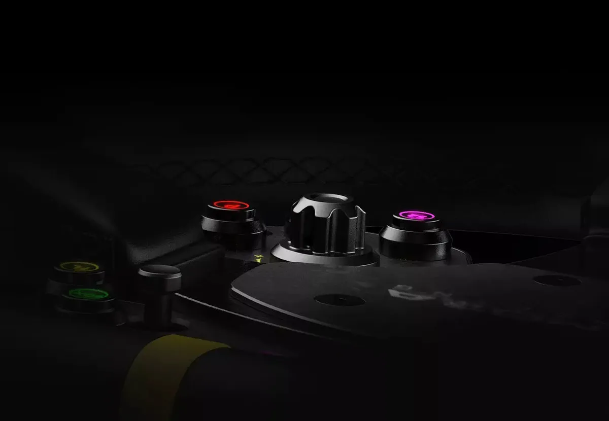 - 2 joysticks, 2 rotary knobs, and customizable RGB shift lights.